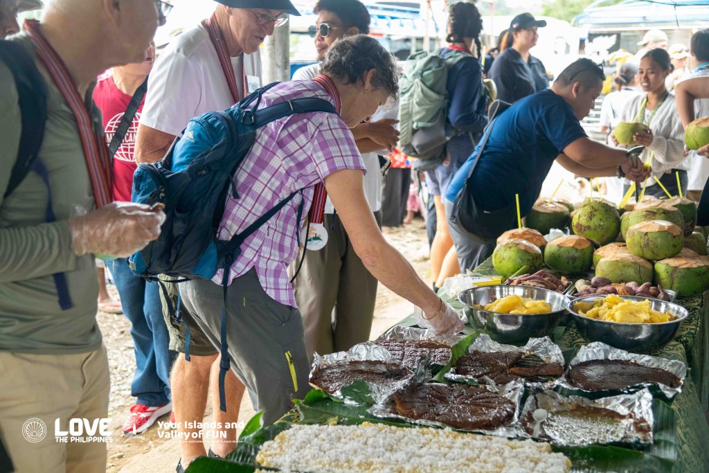 In Gonzaga, Mayor Rellie S. Dalmaceda personally welcomed the guests as they began their community-based tour. Visitors traveled aboard local jeepneys to reach their destinations, which included the Tupigan of the Gonzaga Coconut Farmers Association, a fishing and nature walk at Liban’s Farm and Nature’s Park, and a cultural interaction with the Agta (Aeta) community in Barangay Santa Clara, Sitio Bagsang. Guests were treated to cultural performances and traditional delicacies such as royal bibingka, sweet potatoes, lubi-lubi, and fresh buko.